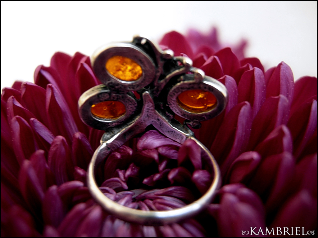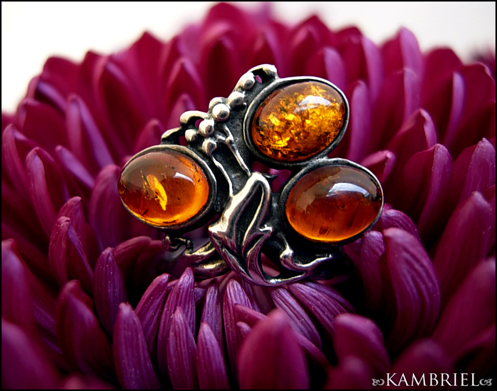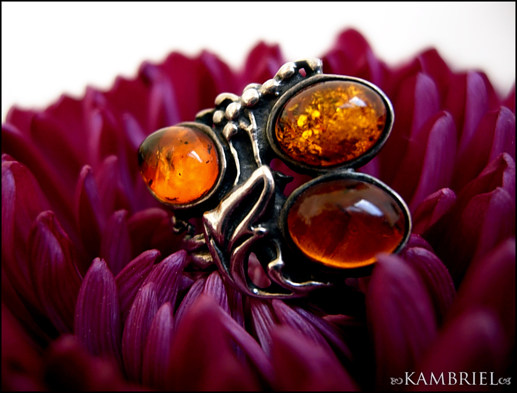 This wonderfully organic vintage ring was made from solid 925 Sterling silver wrought into a delightfully serpentine design that calls to mind overgrown ivy weaving throughout a trio of luminous amber cabochons that appear to glow from within. This would also make an extraordinary stacking ring to pair with another sterling band for a dramatic & magical effect. I don't have a ring sizer, but would estimate it to be around a size 5 1/2 ~ the inner diameter measures approx. 16mm across. The ring has been lovingly cared for over the decades & is ready for its next enchanting chapter of life!